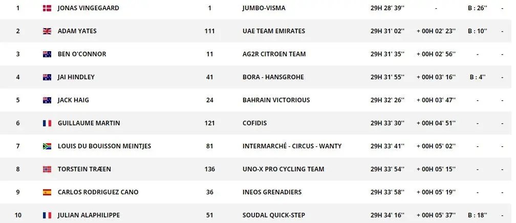 - 2022 : Primoz Roglic (SLO) ;