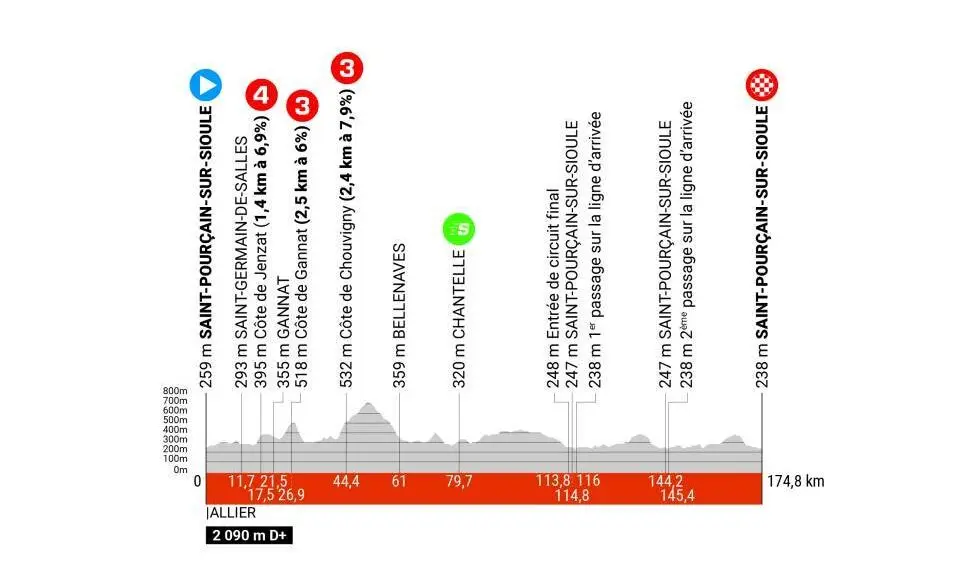 Étape 1 – Dimanche 2 juin – Saint-Pourçain-sur-Sioule > Saint-Pourçain-sur-Sioule – 172.5 km