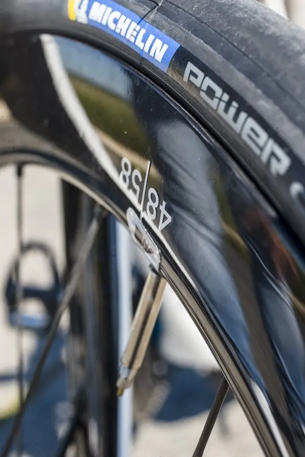 Ce nouvel Ostro VAM s’accompagne d’une nouvelle paire de roues Black Inc. développée avec le cadre, avec une hauteur de jante différenciée de 48 mm à l’avant et 58 mm à l’arrière, une largeur interne de 23 mm idéale pour les pneus de 28 à 30 mm de section, des rayons carbone et des roulements céramiques CeramicSpeed. Des roues avec crochets, qui ne se limitent donc pas à une pression de gonflage de 5 bar, et qui affichent un poids redoutable de 1280 g la paire malgré les jantes hautes.
