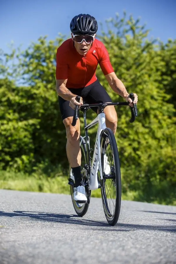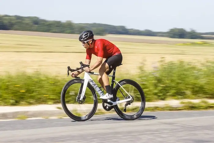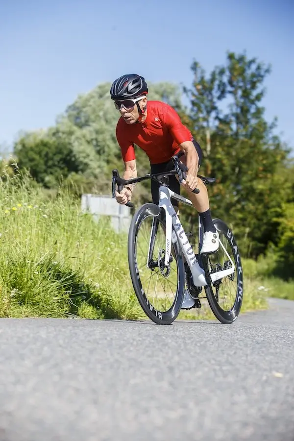 L’Ostro VAM dans cette nouvelle version n’évolue pas ainsi radicalement dans son comportement par rapport au modèle de 2020. Il reste un vélo très rigide qui privilégie la stabilité et l’efficacité à haute vitesse au côté complaisant mais moins percutant des vélos destinés à la haute montagne. J’ai trouvé cette machine particulièrement exigeante dans certaines conditions, notamment en ville sur des sessions de parcours nécessitant de nombreuses relances, sur des côtes courtes et pentues ou sur des séances d’entrainement en fractionnés avec des séries de sprints répétés. Le vélo s’est révélé en revanche conforme aux attentes sur les longs bouts droits exposés au vent, dans les descentes rapides, ou même dans les ascensions assez longues avec un pourcentage régulier.
