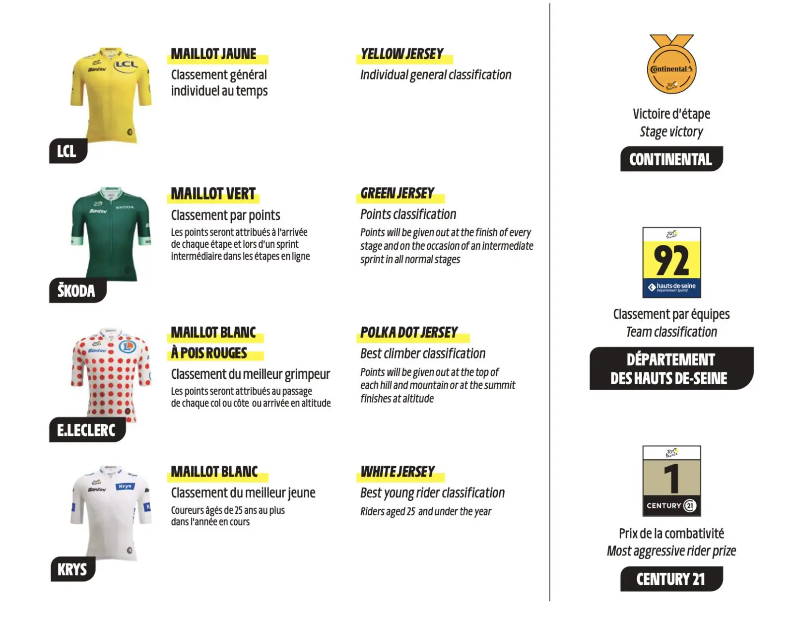 Les maillots distinctifs du Tour de France 2024
