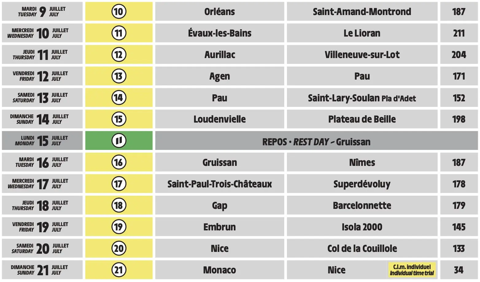 Le kilométrage étape par étape du Tour de France 2024