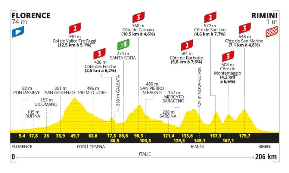 Étape 1 – Samedi 29 juin – Florence / Rimini – 206 km