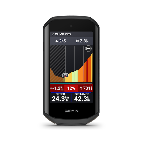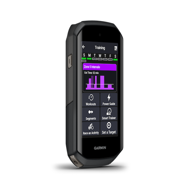 L’appareil bénéficie d’un boîtier biseauté, de boutons discrets entièrement métalliques et d’un support quart de tour remplaçable autour d’un écran LCD de 3,5″. Le 1050 offre désormais la fonction de Paiements sans contact Garmin Pay, mais aussi d’un haut-parleur intégré pour écouter les instructions vocales d’entraînement et de navigation, alerter les cyclistes et les piétons sur la route grâce à une sonnette intégrée à l’appareil.