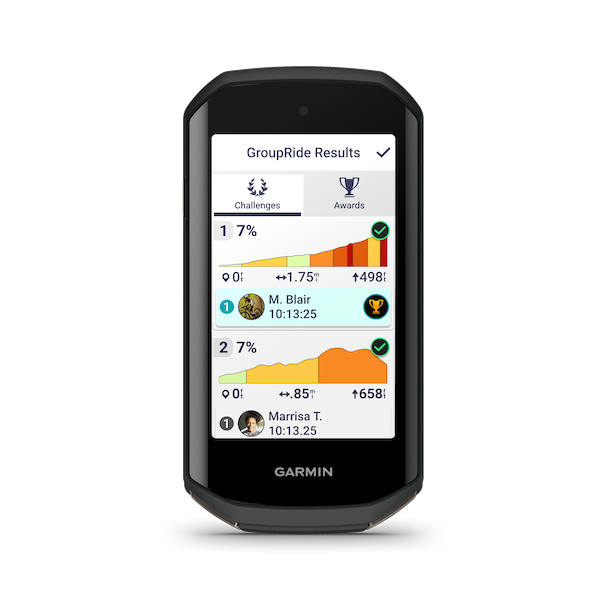 L’Edge 1050 présente des fonctionnalités conçues pour rassembler la communauté cycliste. La fonction GroupRide permet de rester connecté avec ses compagnons de sortie grâce à la messagerie intégrée, à la position de chacun en temps réel et aux alertes de détection d’incident. Ces alertes peuvent avertir les autres cyclistes et les guider vers la personne ayant besoin d’aide. Les groupes peuvent également donner une dimension compétitive à leurs sorties avec des classements en temps réel pour les montées par exemple.
