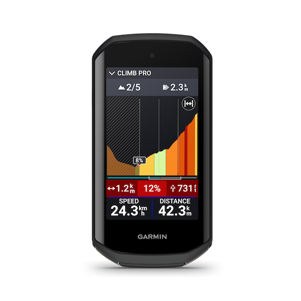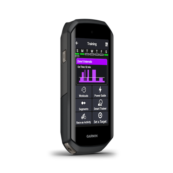 L’appareil bénéficie d’un boîtier biseauté, de boutons discrets entièrement métalliques et d’un support quart de tour remplaçable autour d’un écran LCD de 3,5″. Le 1050 offre désormais la fonction de Paiements sans contact Garmin Pay, mais aussi d’un haut-parleur intégré pour écouter les instructions vocales d’entraînement et de navigation, alerter les cyclistes et les piétons sur la route grâce à une sonnette intégrée à l’appareil.