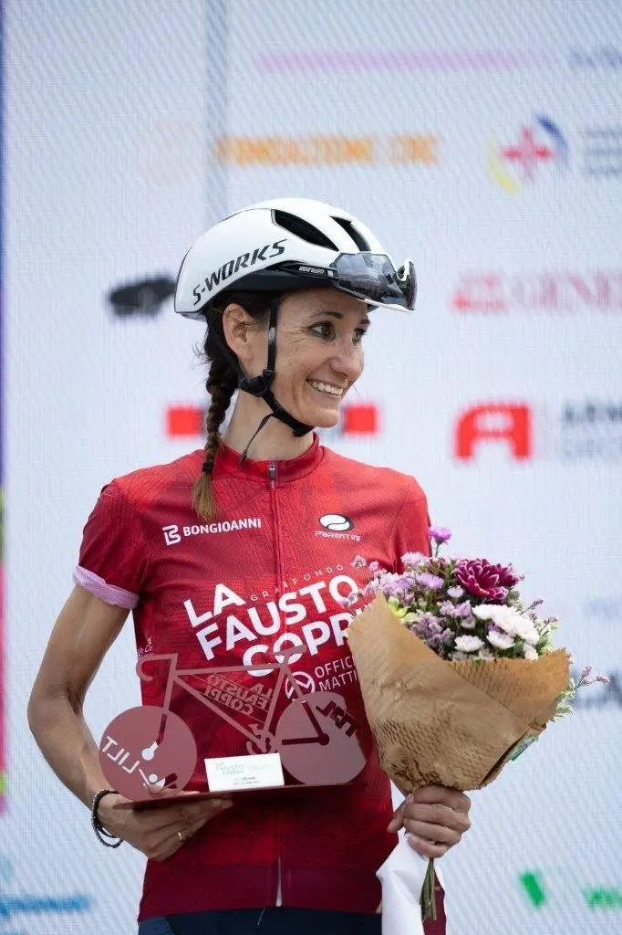 Roberta Bussone (ASD ROADMAN TEAM) – Vainqueuse du 35ème GF Internazionale La Fausto Coppi Officine Mattio : « J’avais déjà participé à deux éditions en 2009 et 2010, en faisant le parcours moyen. Après avoir participé à plusieurs courses de granfondo cette année, j’ai tenté le long parcours. C’est une course très exigeante, notamment parce que je me suis souvent retrouvé seule. Dans les montées, j’ai essayé de donner tout ce que j’avais, dans les descentes et dans les transferts entre les montées, de ne pas perdre trop de temps. Même si mes jambes étaient fatiguées dans le final, j’ai réussi à me débrouiller dans la dernière montée, c’est pourquoi je suis vraiment satisfaite de mon temps. Dans la vie, je suis une employée de la télé nationale Rai advertising, je travaille pour le bureau des impôts. J’essaie de trouver des moments dans mon temps libre pour m’entraîner. Je le fais par passion. J’ai participé à 8 courses de granfondo cette année : j’ai commencé par le Sanremo, puis la Coppa Piemonte, la Bra-Bra et cette année j’ai gagné toutes les courses de granfondo féminin. J’espère poursuivre ma saison comme je le fais actuellement. J’aime grimper et j’aime pédaler en altitude. Je préfère les courses de granfondo avec beaucoup de dénivelé car c’est là que je fais la différence ».