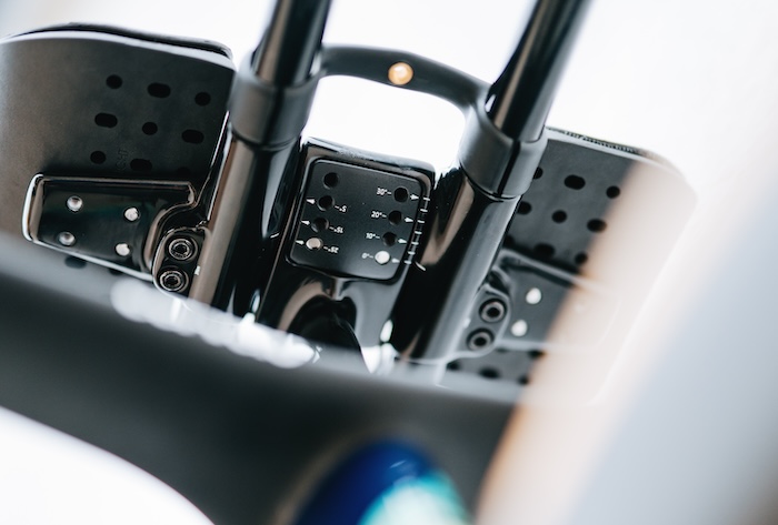 Les nouveaux reposes-coudes et pads du P5 sont plus larges, plus hauts et plus épais qu’auparavant. Nettement plus confortable, ils permettent aussi de largement gagner en confiance. Une plus grande surface d’appui permet un meilleur contrôle, ce qui signifie plus de temps dans la position la plus aérodynamique possible.