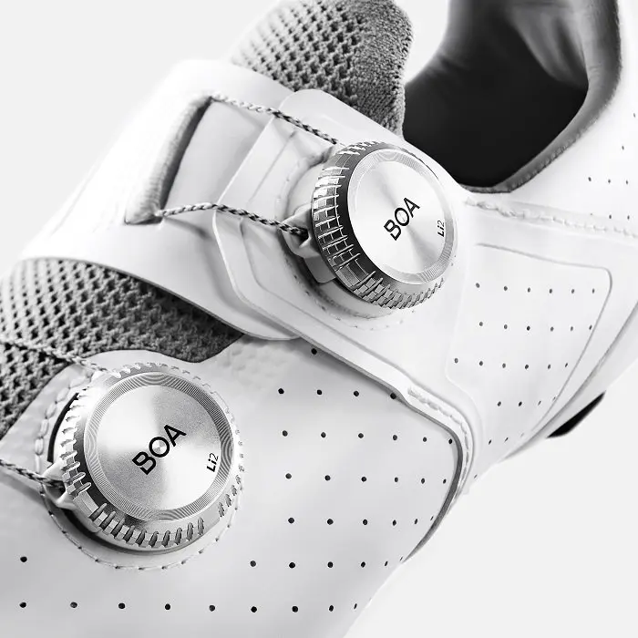 De plus, deux Boa Li2 en aluminium anodisé offrent un ajustement multidirectionnel, efficace et précis, à la fois durable et remplaçable.