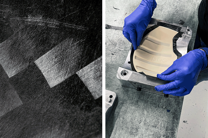 – L’insert en Koridion de l’ailette en carbone optimise la sécurité, l’intégrité du casque et la répartition des forces.