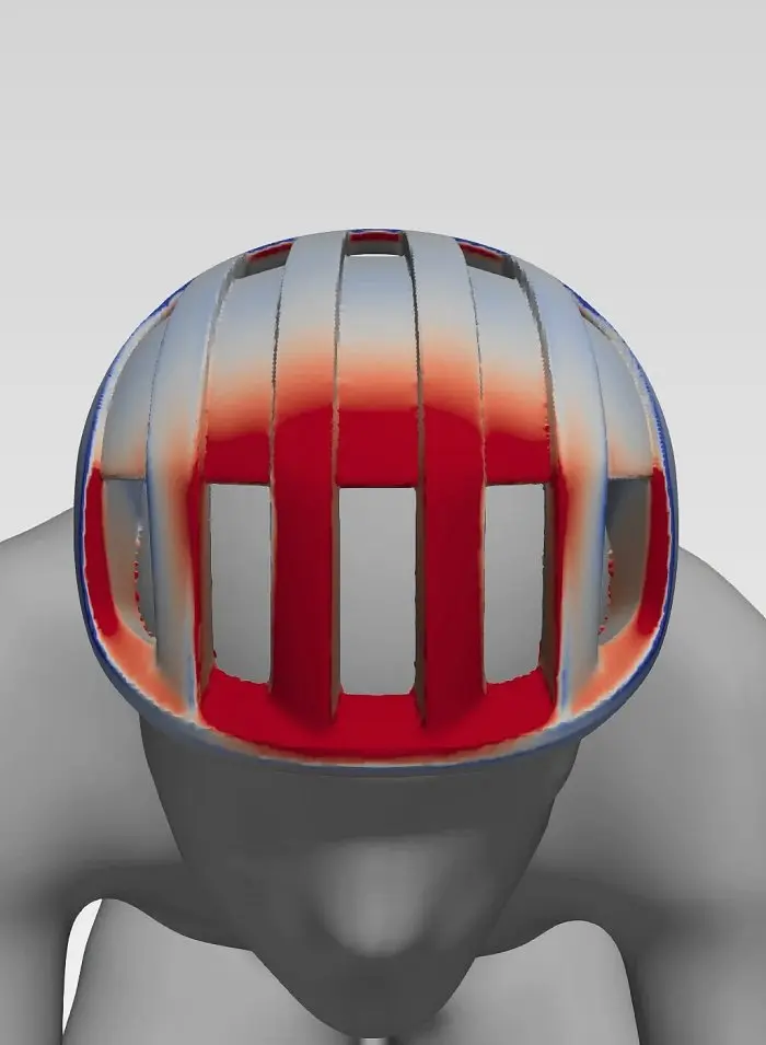 Testées en soufflerie et ajustées grâce aux tests en mécanique des fluides numériques (MFN), la conception à ailette en carbone et la résistance de la matière permettent d’augmenter la prise d’air frontale. Ainsi, plus d’air circule librement à l’intérieur du casque. Des canaux intérieurs linéaires, qui guident le flux d’air, et des ports de sortie associés permettent à de larges quantités d’air de circuler à l’intérieur puis de sortir du casque, rafraichissant le cycliste au passage.