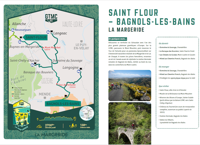 Avec pas moins de 3 régions (Bourgogne-Franche-Comté, Auvergne-Rhône-Alpes et Occitanie), la GTMC propose une diversité de paysages, de topographies et de curiosrités touristiques à visiter entre deux pédalées. Pour des vacances authentiques, intimistes et oxygénantes, la GTMC s’inscrit plus que jamais dans l’air du temps. Suivez et rencontrez des itinérants actuellement en cours de séjour sur la GTMC sur simple demande !