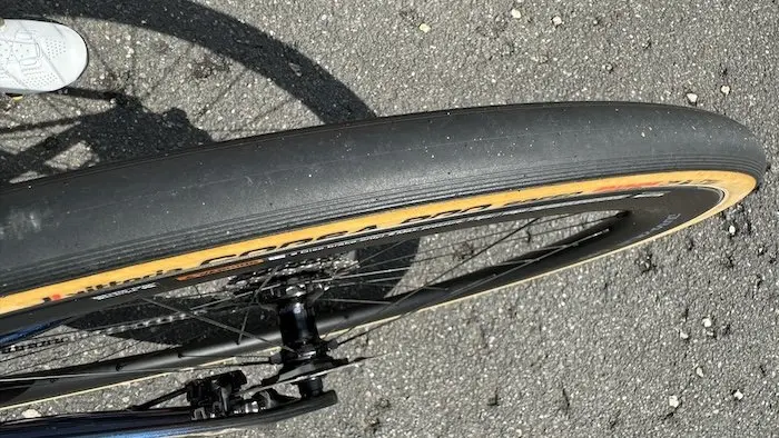 Enfin, si Vittoria classe ses Corsa Pro Speed parmi les pneus dédiés au contre-la-montre, il ne fait aucun doute que vous pourrez parcourir plusieurs centaines de kilomètres avec ce montage. Bien sûr, je ne parle pas d’entrainement hivernal sur routes humides et souillées tous les jours, mais disons qu’en plein été ils peuvent facilement supporter la distance de quatre ou cinq cyclosportives. Tout dépend de votre poids, du type de route et de pilotage, mais j’ai plutôt été agréablement surpris du niveau d’usure relativement contenu de ces pneus de très haut de gamme destinés à la pure performance.