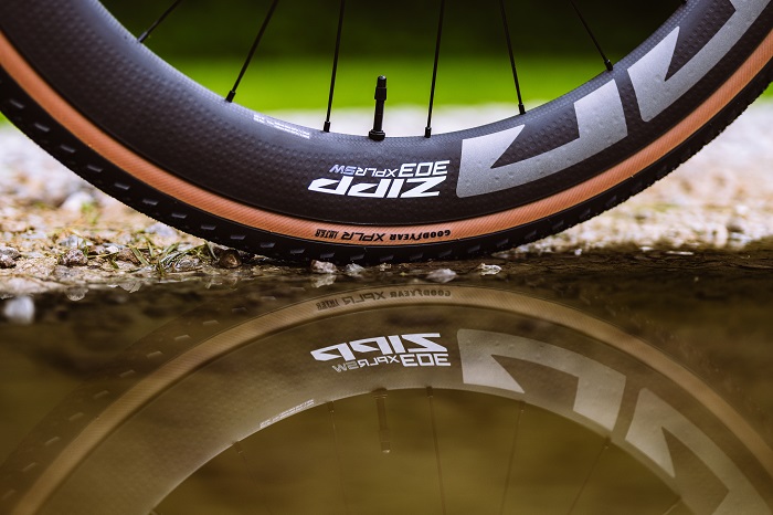 Cette roue est optimisée pour un usage avec les pneus Goodyear XPLR Slick et Goodyear XPLR Inter, tous deux développés en partenariat avec Zipp.