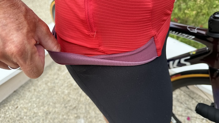 Pour ce qui est du cuissard, les hanches sont légèrement moins maintenues qu’avec le Free Aero Race, et l’insert a tendance à bouger un peu lors des efforts intenses en position de recherche de vitesse. Mais il reste cependant confortable, et jamais contraignant, notamment au niveau des cuisses où il ne provoque pas de plis sans toutefois se montrer trop serré, et au niveau du torse, où les bretelles fines et élastiques se font totalement oublier.