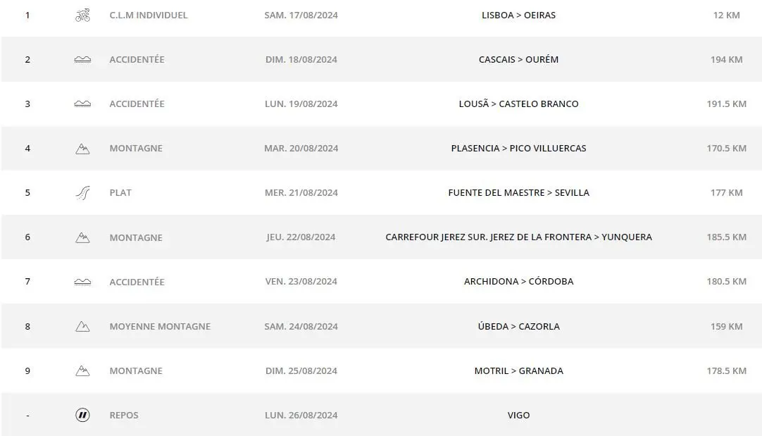 Le parcours et le kilométrage par étape du Tour d’Espagne 2024