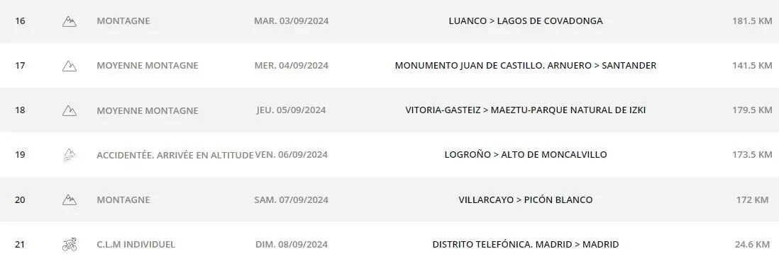 Les cartes et profils des 21 étapes de la Vuelta 2024