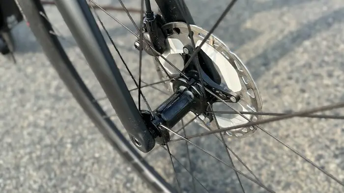 Concernant les développements, le vélo est livré avec un double plateau 52-36 désormais assez classique sur les vélos de série, et d’une cassette 12 vitesses 11-34 parfaitement polyvalente pour affronter tous les types de terrain, même si les écarts de dentures en milieu de cassette peuvent parfois être gênants pour rouler en plaine. Un braquet minimum de 36/34 permet cependant à un cycliste moyennement entrainé de passer partout relativement confortablement. Et c’est bien là l’objectif.