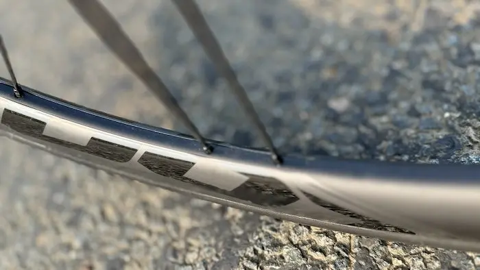Le 785 Huez est ici équipé également de roues carbone Look RD 38 Carbon, développées avec la marque sœur Corima et d’un poids annoncé de 1660 g la paire. Des roues discrètes, avec des jantes pas trop hautes de 38 mm et une largeur interne de 19,3 mm qui convient au mieux aux pneus de 25 à 28 mm de section, même si le vélo accepte des pneus jusqu’à 32 mm pour ceux qui recherchent un confort et une adhérence encore supérieurs. Elles sont montées avec des pneus Hutchinson Fusion 5 Performance en 700×25, qui ont là aussi valeur de référence en termes de compromis entre rendement, confort, adhérence et durabilité.
