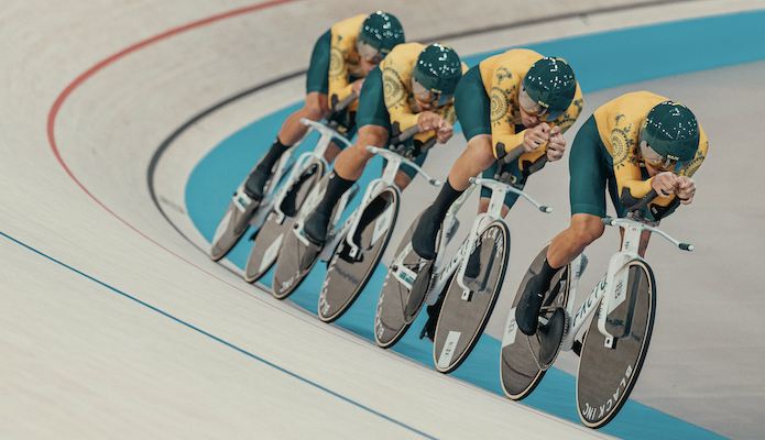 L’équipe australienne de poursuite masculine à quatre, équipée du HANZŌ et roues lenticulaires Black Inc ZERO Zero, a établi un nouveau record du monde et olympique de 3’40 »730 lors des qualifications et a ensuite arraché le titre olympique à l’équipe britannique lors de la course pour la médaille d’or le 7 août à Paris.