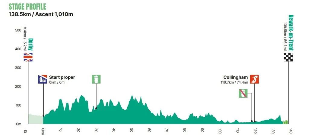 Vendredi 6 septembre : Étape 4 – Derby-Newark-on-Trent, 138,5 km