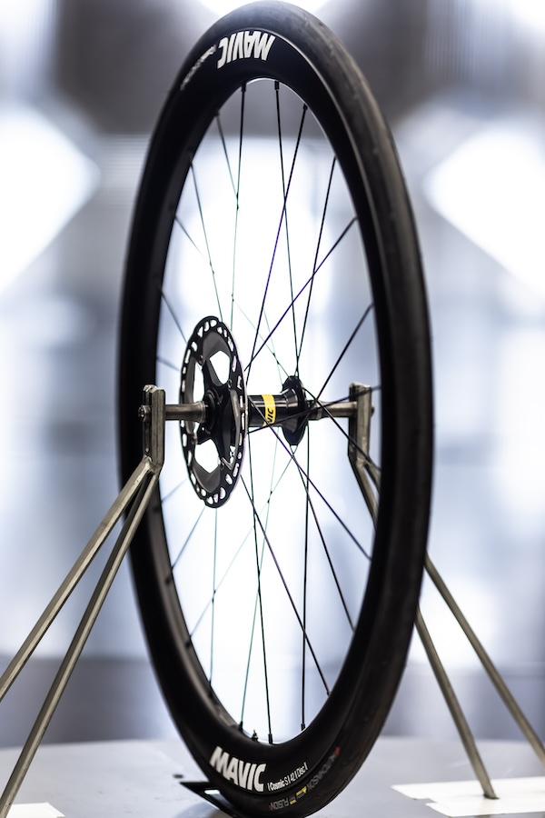 Dans la gamme de roues Mavic, la dénomination des produits peut parfois dérouter les novices. Le nom Cosmic représente depuis une trentaine d’années la famille de roues aérodynamiques, avec un profil moyen ou haut. Le S signifie le premier niveau de gamme (il existe des Cosmic SL et SLR à un niveau de gamme plus élevé), le 42 indique la hauteur de jante, et le Disc le type de freinage.