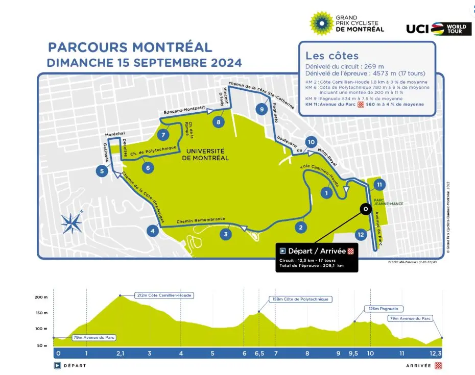 La carte et le profil du parcours du Grand Prix Cycliste de Montréal 2024