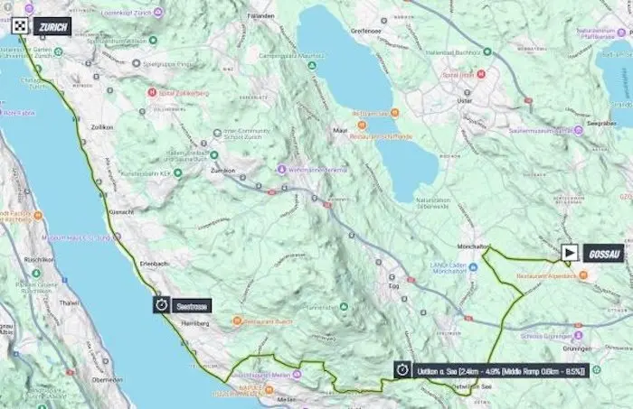 Les femmes auront 29,9 km à parcourir, et là aussi la montée vers Uetikon am See.