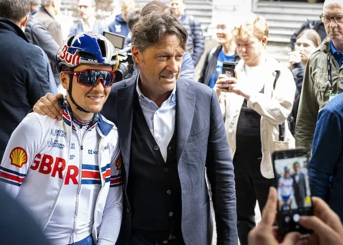 À l’occasion des championnats du monde de Zurich, Pinarello a ouvert un nouveau magasin dédié 100 % à la marque. Le champion olympique Tom Pidcock était parmi les invités vedettes pour présenter son DOGMA XC médaillé d’or.