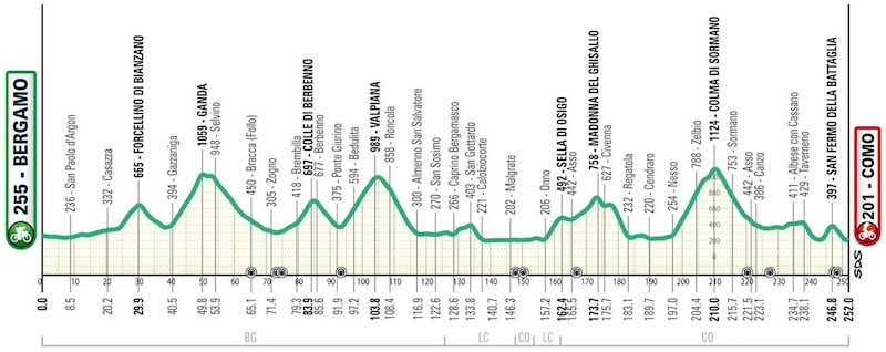 Les coureurs devront franchir huit ascensions au total, dont quatre dans les 100 derniers kilomètres.