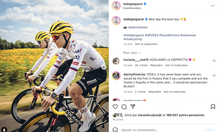 Par Jean-François Tatard – Photos : Instagram Tadej Pogacar / DR