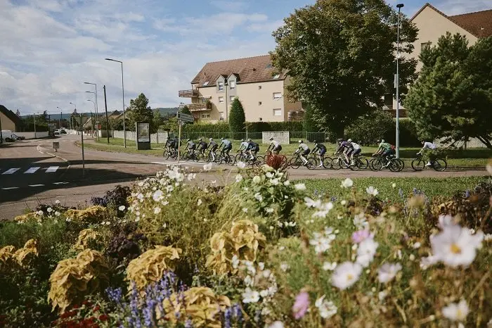 Qui dit agglomération qui dit également feux de signalisation et donc relances d’autant que le groupe d’une vingtaine de cyclistes oblige justement à quelques efforts en trainant derrière entre deux ronds points.