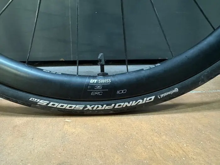 Les roues DT Swiss du test se caractérisent par leur polyvalence. La roue avant en 35 mm « seulement » permet d’avoir un vélo qui tourne plus facilement et qui est moins soumise au vent latéral donc l’avant est plus reposant. Mais effectivement, des roues plus hautes avant/arrière pourraient rendre le vélo plus aéro et plus rigide, pour une utilisation en course traditionnelle, pour ceux qui cherchent une rigidité maximum ou aussi pour rouler surtout sur des parcours roulants.