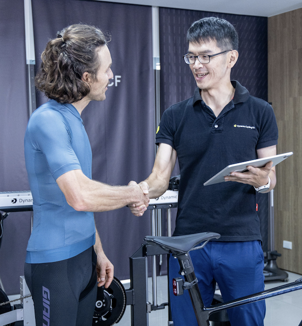 Il a servi de cobaye lors de la présentation de l’étude posturale DCF Supreme en France à laquelle nous avons pu assister, début septembre. L’étude lui a permis de tester différentes configurations, que ce soit en longueur ou hauteur de la selle et du poste de pilotage, afin d’optimiser son confort et son efficacité. Grâce aux mouvements du DCF Bike Pro pilotés par l’opérateur, il a pu se rendre compte directement de l’influence de chaque évolution des réglages sur sa position, que ce soit grâce au simulateur de pente ou à la résistance de l’appareil. D’ailleurs, l’ancien professionnel admettait sans peine être bien « occupé » par l’effort, comme pouvait en témoigner sa transpiration à l’issue de la séance.