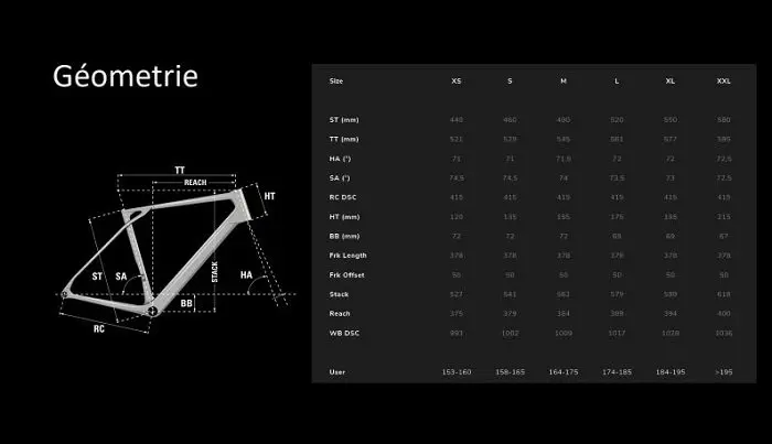 Elle est donc plus adaptée à la performance tout en restant proche d’un rapport stack/reach relativement neutre du marché.
