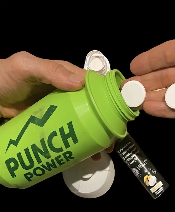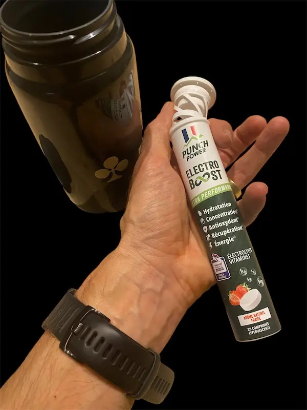- Pendant l’effort : surtout en cas de forte transpiration, ajoutez 1 comprimé dans votre bidon pour maintenir vos performances.