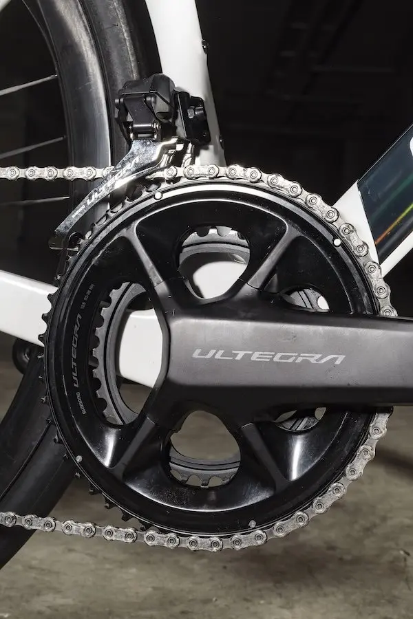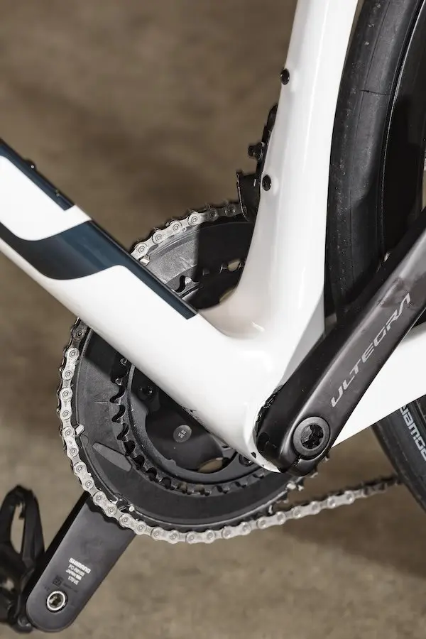 Avec un groupe Shimano Ultegra Di2, Girs a fait ici le choix pour notre vélo de test d’un équipement reconnu pour sa précision et sa fiabilité. Les performances de la transmission et du freinage sont équivalentes à celles du groupe haut de gamme Dura-Ace, avec environ 300 g de plus.