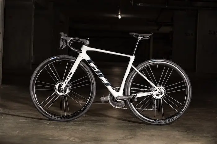 Le GIRS KOM en bref… Les + : rigidité, stabilité, rapport qualité/prix, roues CADRE : Carbone T1000 – FOURCHE : Carbone – ROUES : Sonic Ultra 35/40 – PNEUMATIQUES : Michelin Power Cup tubeless 700×28 mm – PÉDALIER : Shimano Ultegra 52-36 – CASSETTE : Shimano Ultegra 12v 11-30 – DÉRALLEURS : Shimano Ultegra Di2 – FREINS : Shimano Ultegra, disques 160/140 mm – LEVIERS : Shimano Ultegra Di2 – CINTRE : Combo Hyper Sonic – TIGE DE SELLE : Super Sonic alu – SELLE : Selle Italia ModelX – NOMBRE DE TAILLES : 5 – POIDS : 7,540 kg en taille 49 (sans pédales) – PRIX : 7515 € (kit cadre à 2190 €) – Contact : www.girs.bike