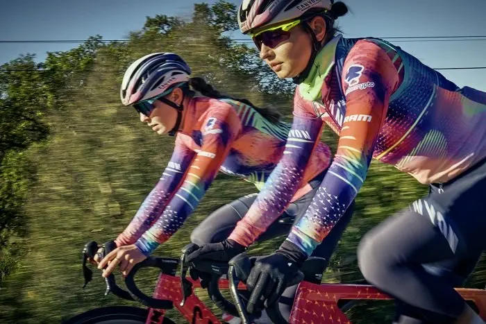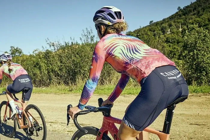 Beth Duryea de Canyon/SRAM Zondacrypto : « Notre identité visuelle constitue une grande partie de ce que nous défendons en tant qu’équipe. Nous avons pour habitude d’être perturbateurs, diversifiés, animés et accrocheurs – tout comme notre kit. Ce style nous a valu beaucoup de fans. Je suis toujours incroyablement honoré quand je vois des fans porter également le kit. »