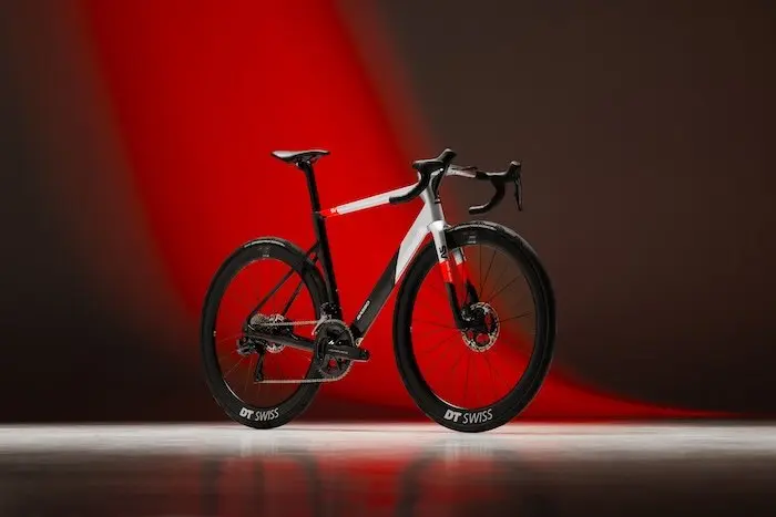 Le cadre est fabriqué en fibres de carbone haut de gamme Torayca T1100 et T1000 et il est annoncé à 780 g en taille 53. Dans sa version haut de gamme, il est annoncé à 6,7 kg en Shimano Dura-Ace Di2 et roues DT Swiss ARC 1100.