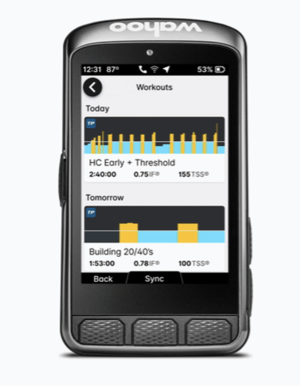 L’appareil propose aussi un suivi de plan ou de séances d’entrainement, par l’intermédiaire de l’application Wahoo. L’Elemnt Ace reprend les entraînements de Training Peaks, TrainerRoad et Wahoo System. En suivant une séance guidée, l’implémentation est bonne et facile à lire à l’extérieur grâce au code couleur, ou encore mieux à l’intérieur sur home-trainer grâce à la taille de l’écran, tellement grande qu’il est difficile de rater des instructions.