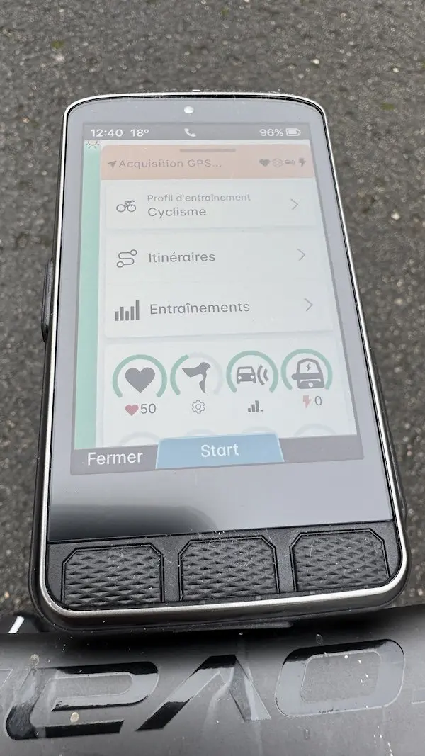 L’interface est conçue pour être intuitive, avec un tableau de bord Ready-To-Ride qui permet d’économiser du temps au départ de chaque sortie. Même si l’allumage du compteur est un peu long (comptez plusieurs dizaines de secondes avant la mise en route de l’appareil), l’écran indique clairement quels capteurs sont connectés et leur niveau d’autonomie en un coup d’œil dans un anneau autour de l’icône de chacun d’entre eux.