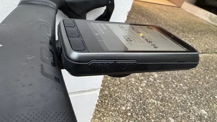 Avec des dimensions de 126 mm x 71 mm x 24 mm, l’Elemnt Ace est grand, très grand. Il prend beaucoup de place sur le poste de pilotage. Et il est lourd, avec 208 g, battant là aussi des records. Ces dimensions et ce poids élevé peuvent même poser des problèmes avec les supports de compteur habituels prévus pour certains cintres monoblocs et/ou aérodynamiques.