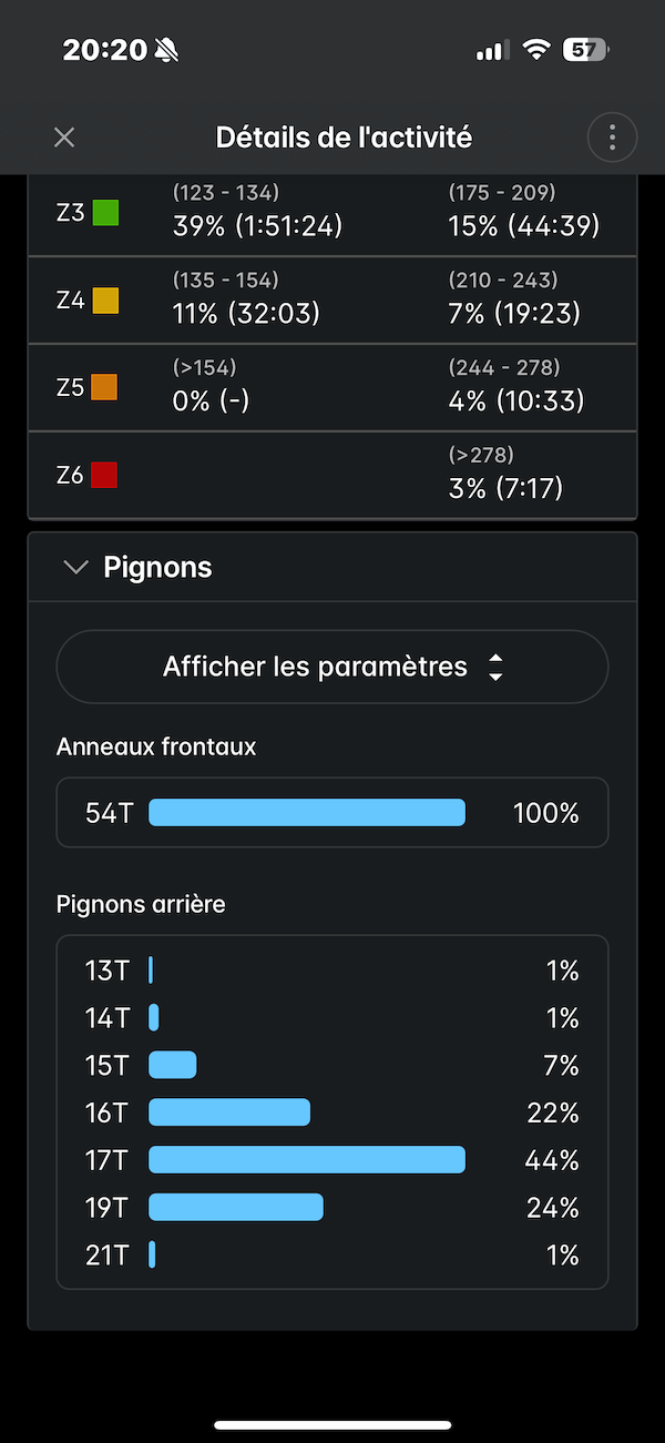 L’affichage de ces données est optionnel et personnalisable sur les pages de menu. Il est possible également de simplement analyser les données a posteriori sur le compteur ou l’application après la sortie.