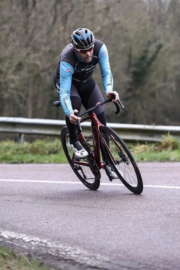 En termes de rendement pur, la machine tient largement ses promesses. Dès les premiers coups de pédale, j’ai pu ressentir la rigidité globale du vélo, mais une rigidité qu’il ne faut pas confondre avec une trop grande raideur. L’Aeroad est vif et parfaitement maintenu sur toute sa longueur. Les roues ne semblent jamais flotter au milieu du châssis, même lors des relances énergiques avec du braquet.