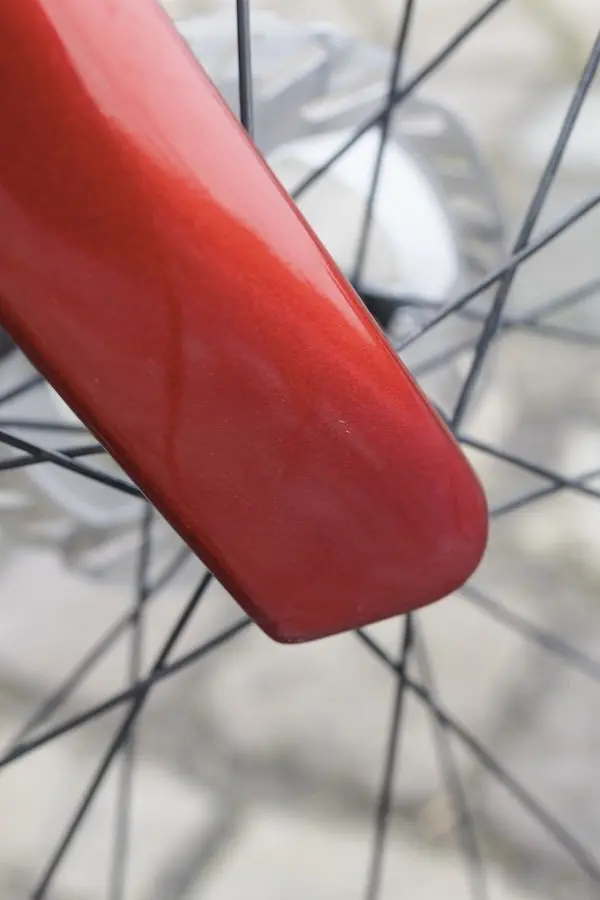 En revanche, la direction est peu sensible aux rafales et je ne me suis jamais senti surpris par une perte de contrôle de la trajectoire sur des parties roulantes. C’est seulement en descente à très haute vitesse, et toujours sous des conditions de vent fort, que le vélo est un peu plus délicat à tenir. Il s’agit tout de même d’une caractéristique souvent commune aux vélos équipés de jantes hautes.