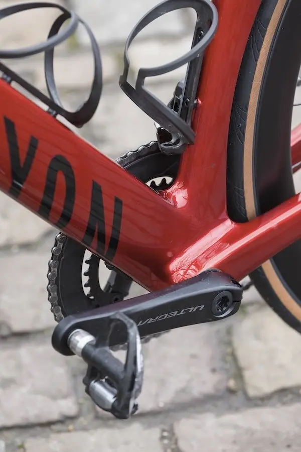 L’option n’est pas disponible en Ultegra, et de toute façon pas possible chez Canyon. Il en est de même pour la longueur de manivelles, imposée ici par la marque. C’est une des limites de la vente en ligne, mais qui permet tout de même d’optimiser au mieux le tarif des vélos de la marque.