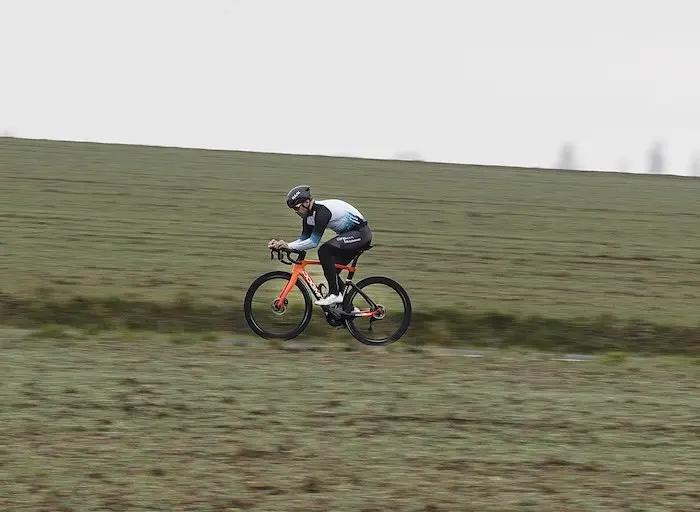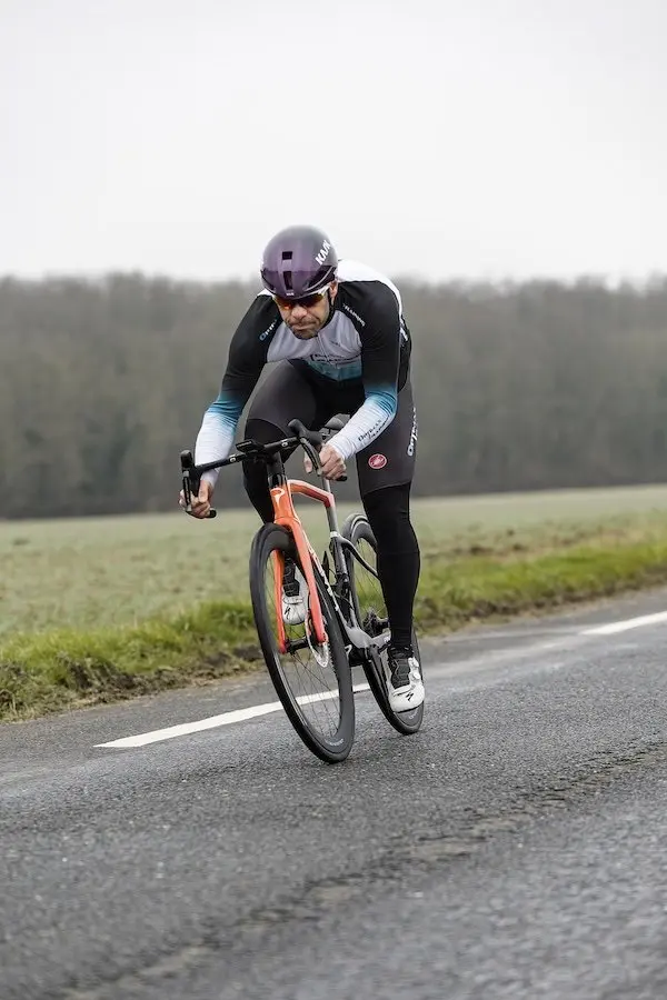 Lorsqu’on roule en force, volontairement ou non avec un gros braquet, le vélo continue de filer droit sans donner l’impression de se désunir.