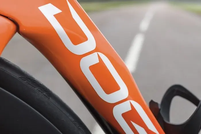 - Le tube diagonal a été redessiné sur sa partie haute. Au niveau du boîtier de pédalier, la marque annonce une amélioration de l’aérodynamisme de 1,2 % grâce à des forme optimisées.