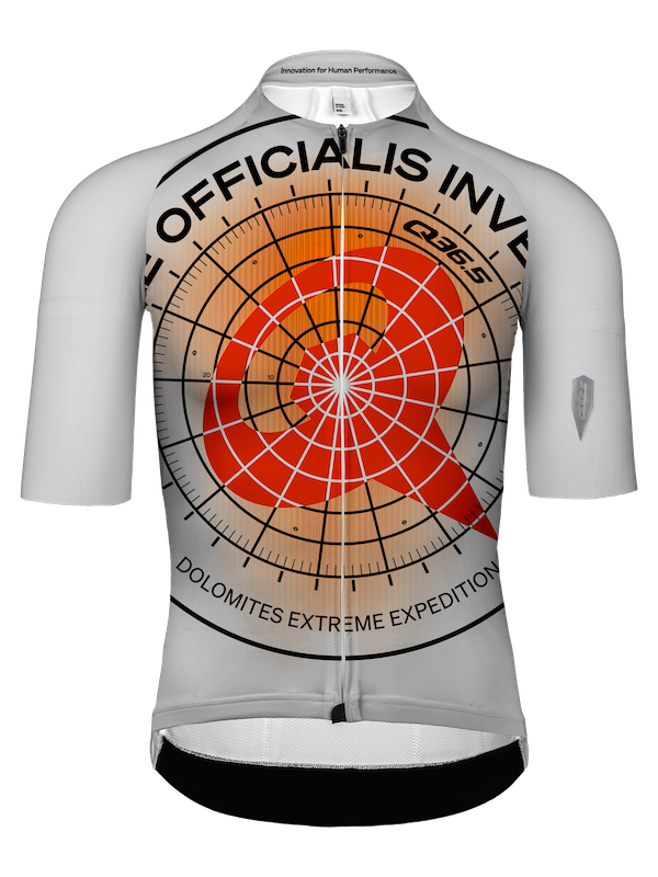 Avec une coupe à cartographie corporelle, le maillot Q36.5 Gregarius Clima Dolomites Extreme épouse parfaitement la forme du torse, en apportant des avantages aérodynamiques.